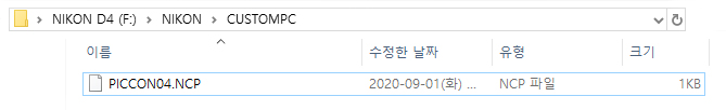 ▣ 이제 이 파일을 카메라에 쓰시는 메모리카드에 폴더를 만드셔서 넣으시면 됩니다. NIKON->COSTOMPC