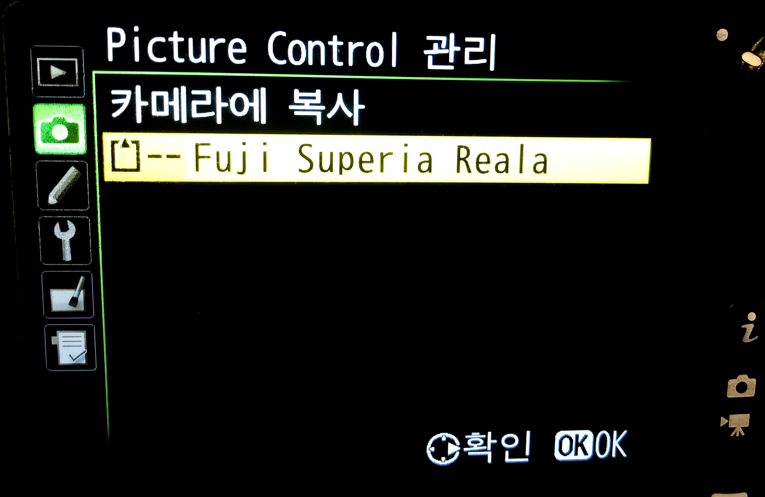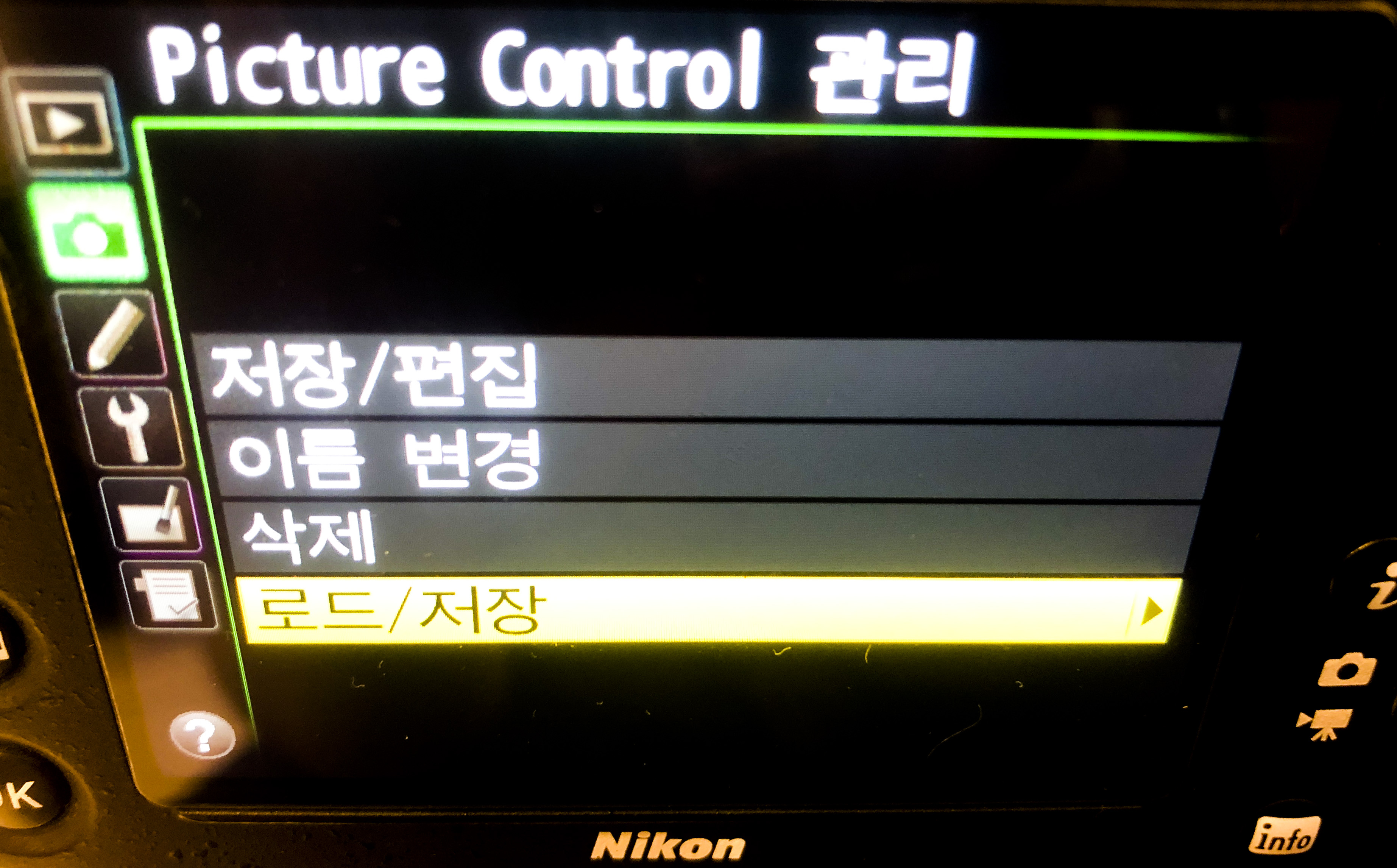 ▣ 픽쳐컨트롤 관리 -> 로드/저장 -> 카메라에 복사 -> 추가하실 픽쳐컨트롤 선택 후 확인 누르시면 됩니다.