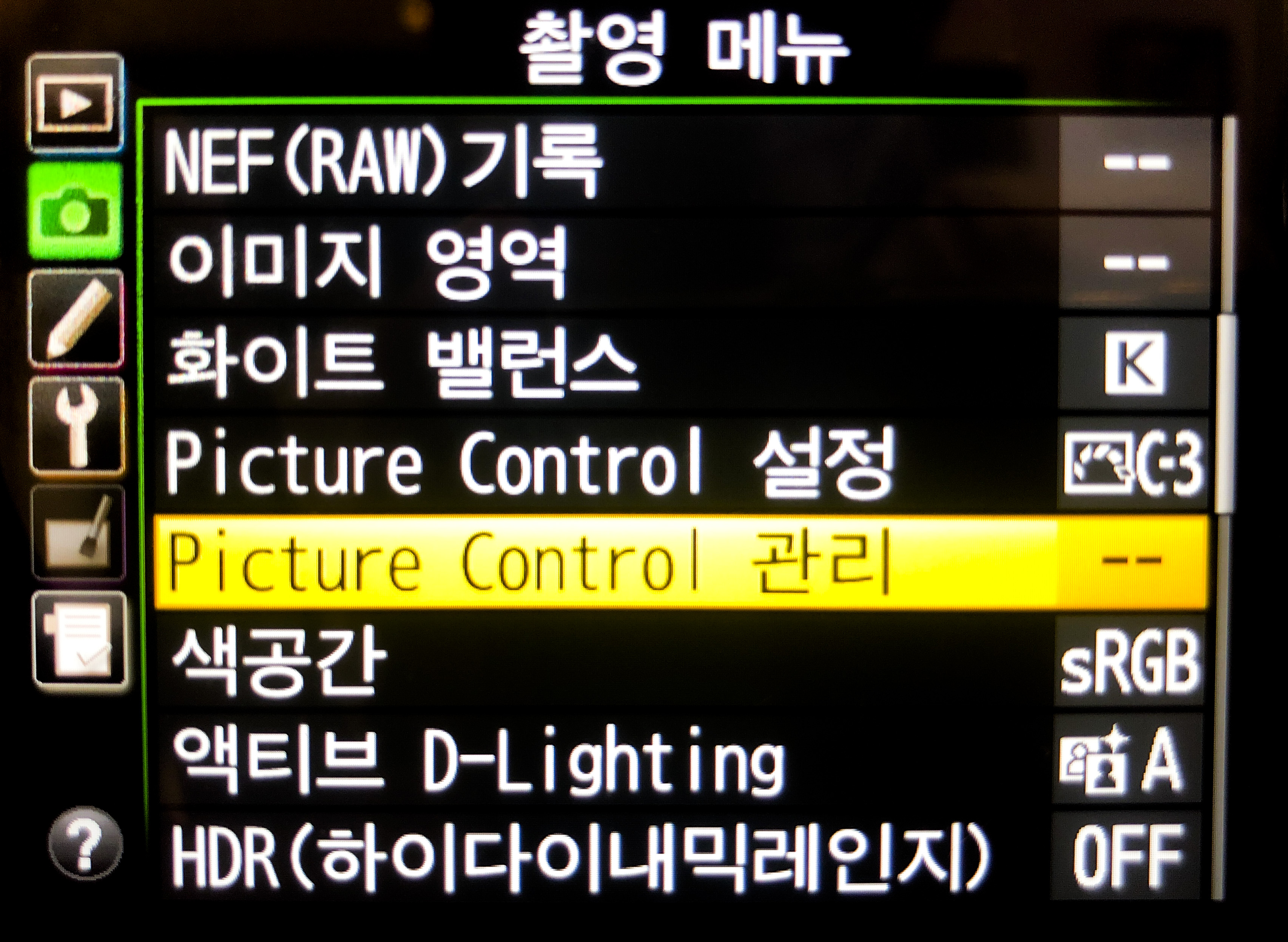 니콘 픽쳐컨트롤(Nikon Picture Control)은 간단하게 설명드리면, 휴대폰 카메라 어플에 각종 필터처럼 색정보를 변경해서 찍을 수 있는 기능이라고 생각하시면 되겠습니다.