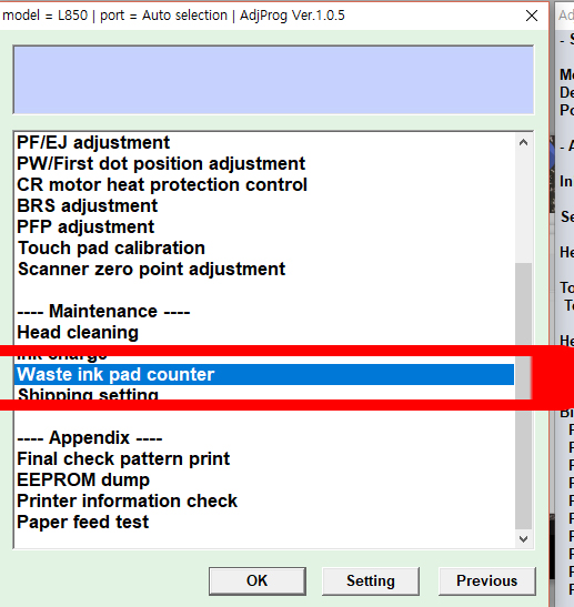 쭉 내려보시면 잉크패드 카운터가 있습니다.